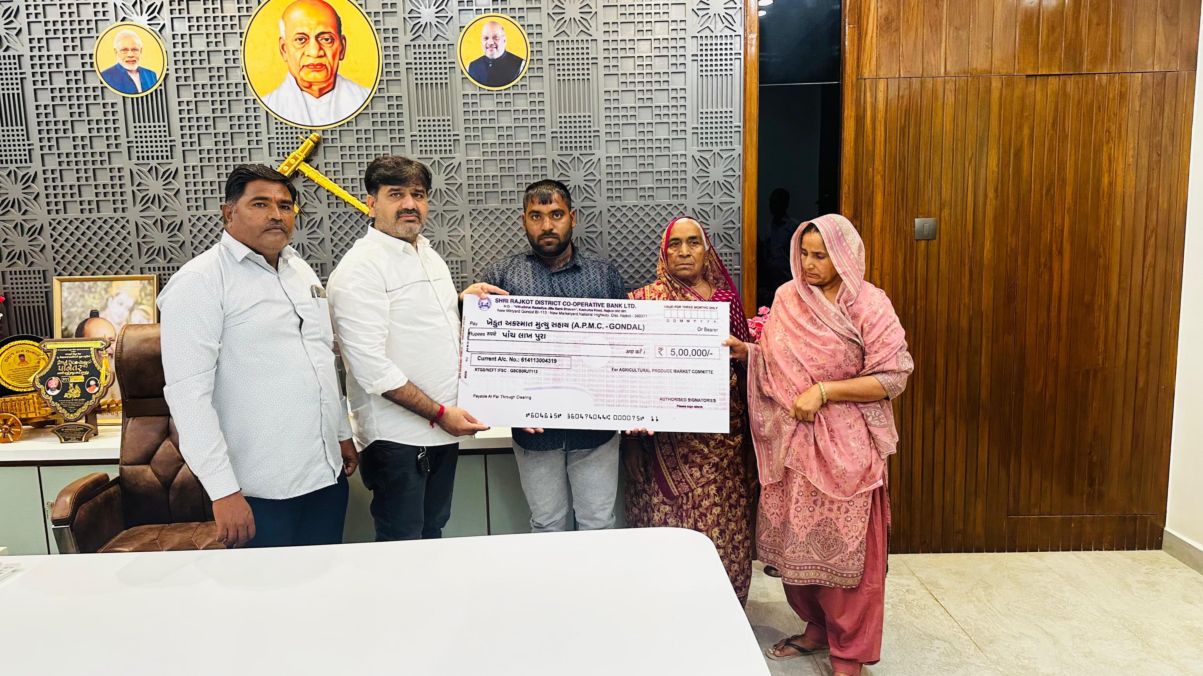 *ગોંડલ માર્કેટિંગ યાર્ડ ખાતે ગુંદાસરા ગામના ખેડૂત ના વારસદાર ને ચેક વિતરણ કરવામાં આવ્યો*