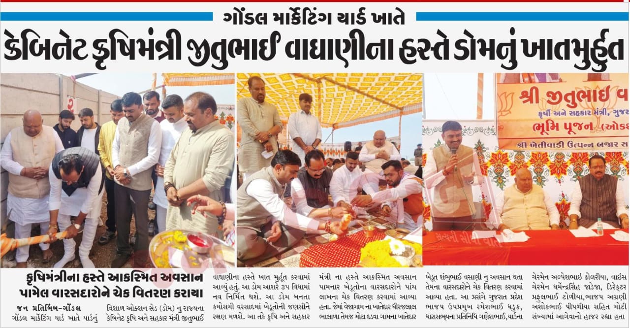 ગોંડલ માર્કેટિંગ યાર્ડ ખાતે જીતુ વાઘાણી ના હસ્તે ડોમ નું ખાત મુર્હુત કરાયું